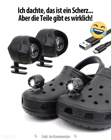 Als ob die Crocs nicht schon hässlich genug wären.. Nein, es müssen da noch Scheinwerfer dran! 🙈😂😂😂 Aber es gibt ja immer jemanden, zu dem das passt. Fällt euch jemand ein?! 😜😅 Hier erhältlich: https://weiterzum.shop/XMwNnMg